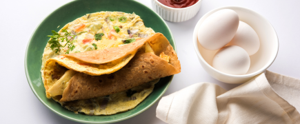 Omlet ze świeżym szpinakiem, szczypiorkiem i pomidorami
