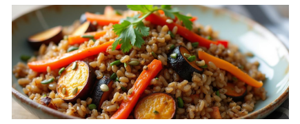 Warzywa z dzikim ryżem i pestkami dyni